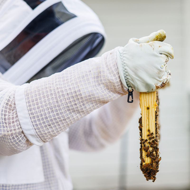 „Das ist ein sogenannter Cover-Block. Mit ihm kann man Text und/oder Buttons vor einem Hintergrundbild darstellen. In diesem Beispiel verwenden wir nur unser Musterbild – aber es könnte auch z.B. ein Landschaftsfoto oder jedes andere Motiv verwendet werden.“
